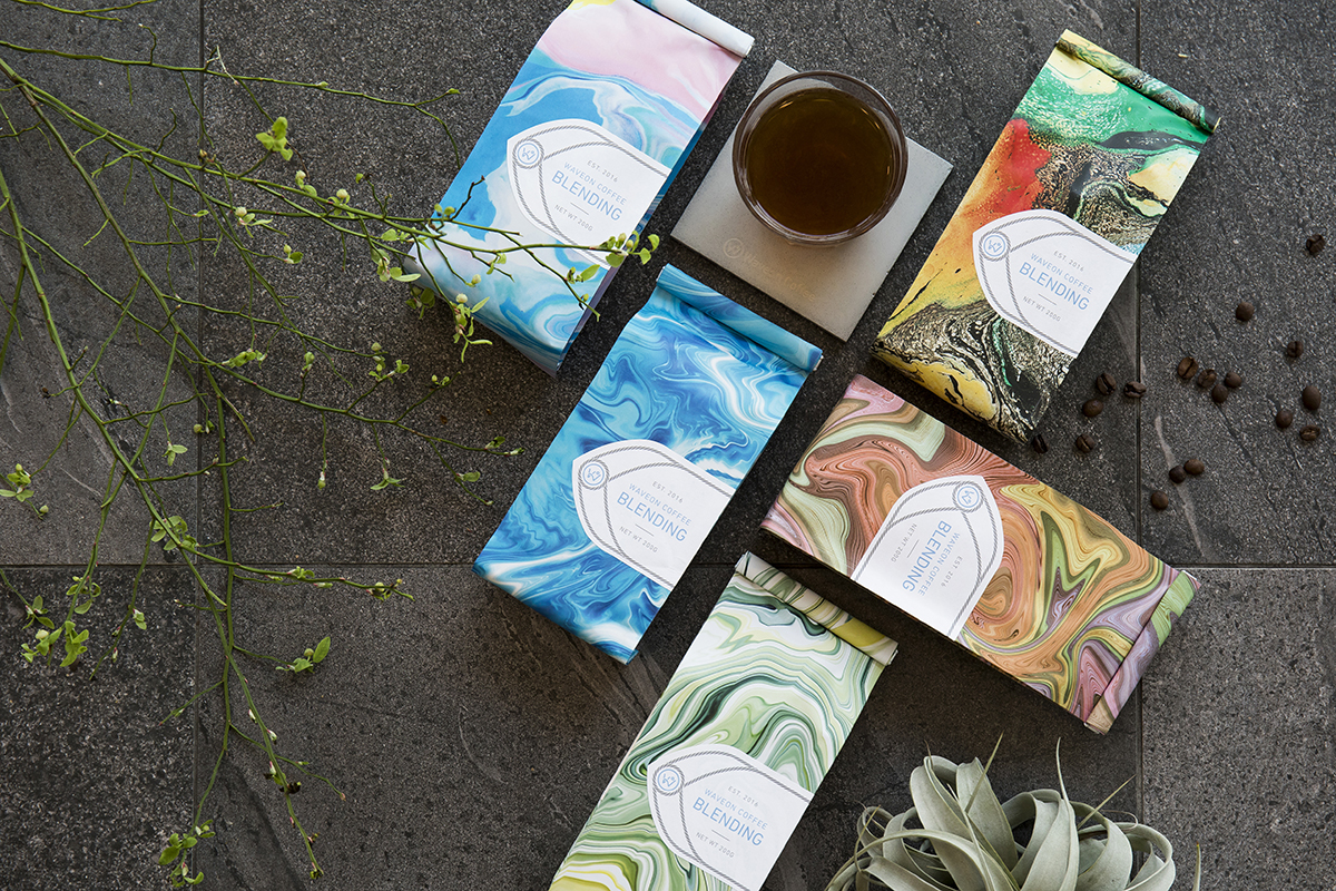 Waveon coffee is a cafe on the hill of overlooking a beautiful beach. It has carried out branding work reflecting the characteristics of this nature-friendly and historically rich region, and it has focused on ensuring brand originality. In particular, marbling with wave concept and artistic and pictorial image were used and developed as graphic motif. so that it was combined with beautiful architectural beauty of the store reminiscent of art museum.